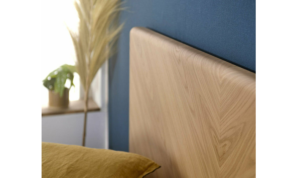 La structure du lit est en panneaux de fibres de bois plaqués chêne massif. Vous avez la garantie d'un couchage stable et résistant, pour un bien-être nocturne optimal.