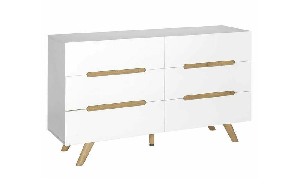 La commode 6 tiroirs Ausa allie fonctionnalité et esthétique avec son élégant coloris blanc et bois. Ce meuble de rangement spacieux optimise parfaitement l'organisation de vos affaires tout en apportant une touche contemporaine à votre intérieur. Son design soigné et sa robustesse en font un choix idéal pour toutes les pièces de la maison.