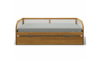Le lit gigogne Makau est conçu pour allier esthétisme, praticité et confort. Adapté aux petits espaces, ce lit 1 place de dimensions 90x190 cm avec un sommier gigogne intégré offre une solution parfaite pour optimiser l’espace dans une chambre ou dans un bureau. La structure du lit est réalisée en bois de pin massif, recouverte d'un vernis à l'eau finition noisette pour un rendu naturel et chaleureux. Le bois provient de forêts gérées de manière durable, conformément à la certification FSC, ce qui en fait un choix écologique pour les parents soucieux de l’environnement.