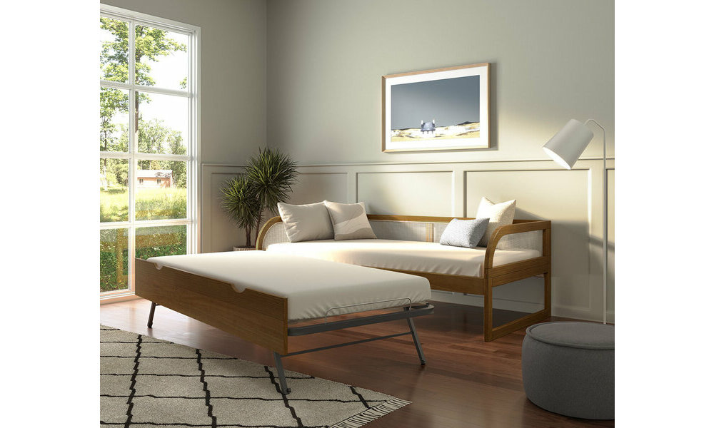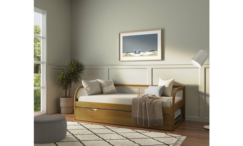 Un des atouts esthétiques majeurs du lit banquette gigogne Makau réside dans son tissage en coton imitation cannage qui orne le contour du lit. Ce détail soigné apporte une touche de modernité et de raffinement à l’ensemble, tout en s’intégrant facilement à une variété de styles de décoration intérieure. Que ce soit pour une chambre minimaliste, bohème ou classique, ce lit apportera une ambiance naturelle et élégante à votre espace.