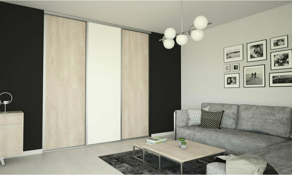 Une porte de placard en aluminium coulissante domino 3 vantaux