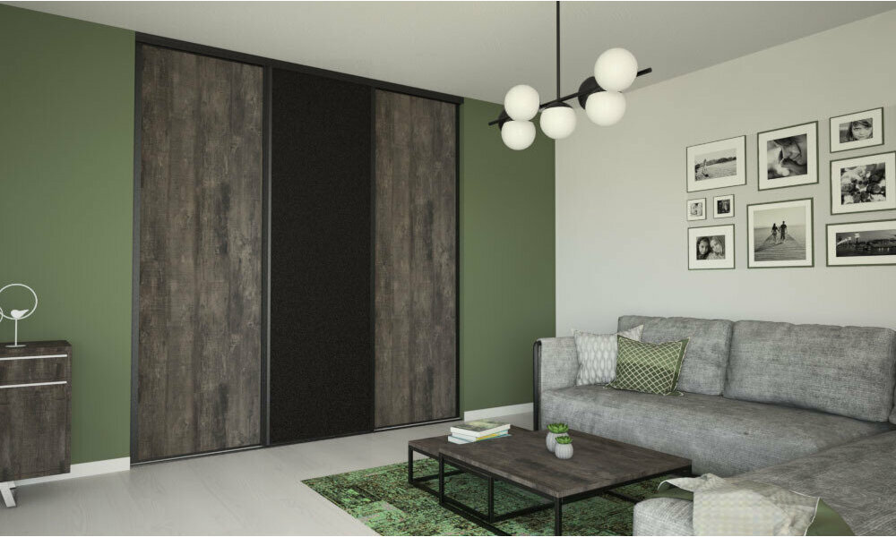 Porte de placard coulissante domino noir Délos - 3 Vantaux