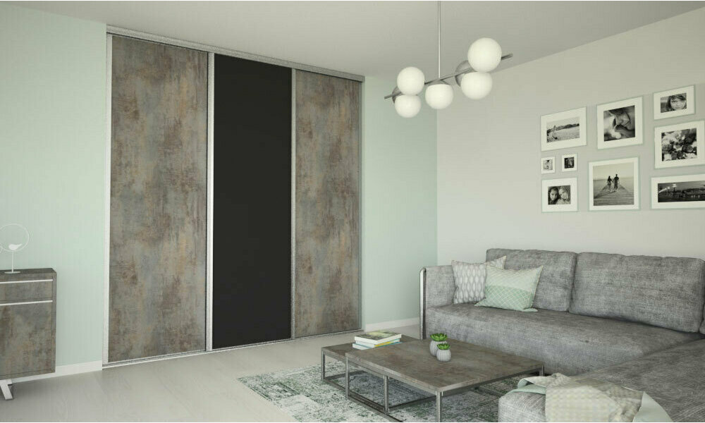 Une porte de placard coulissante domino en aluminium et avec 3 vantaux